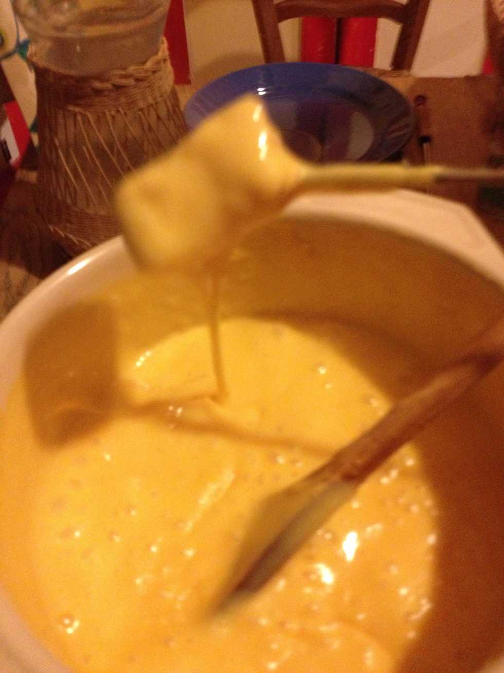 Add cheese, garlic and pepper. Once the molten mixture, mix the cornstarch in water. Stir the cornstarch into the cheese. Mix well to make it homogeneous.