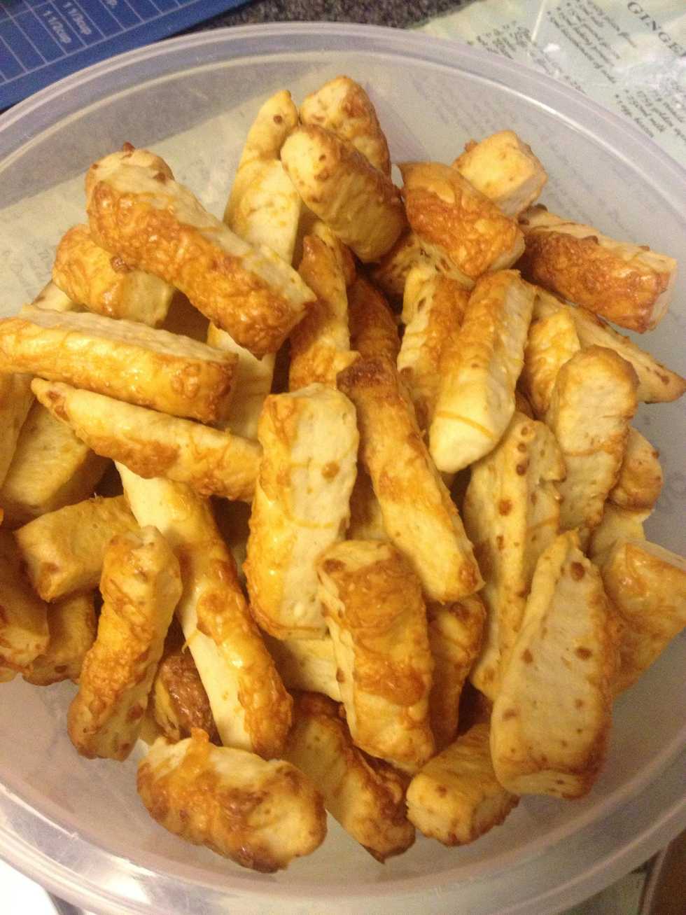 Cut the stripes by every 5-6cm (or even 10m, depending on the size of your flattened dough) to get finger sized slices.