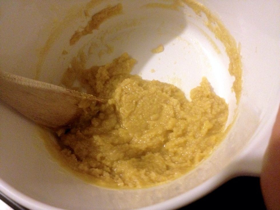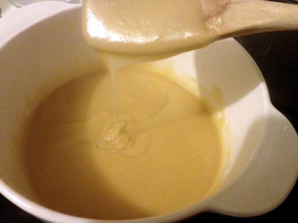 Pour the pan contents into a colander set over a heatproof jug. You will need 250ml of liquid. Make up the quantity using extra cream if required. Alow to cool slightly while you make the roux.