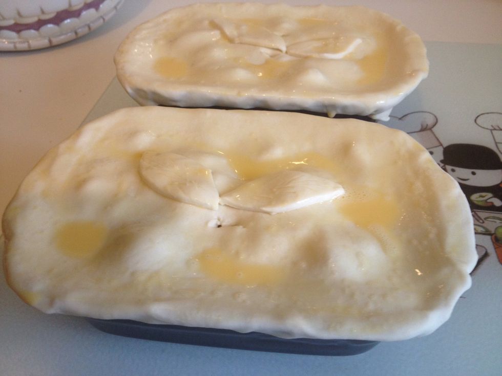 Mix the egg yolk with a splash of milk and egg wash the pastry lid.