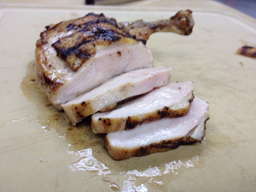 When the chicken reaches an internal temperature of 150F (65C), remove it from the oven and finish it in sauté pan