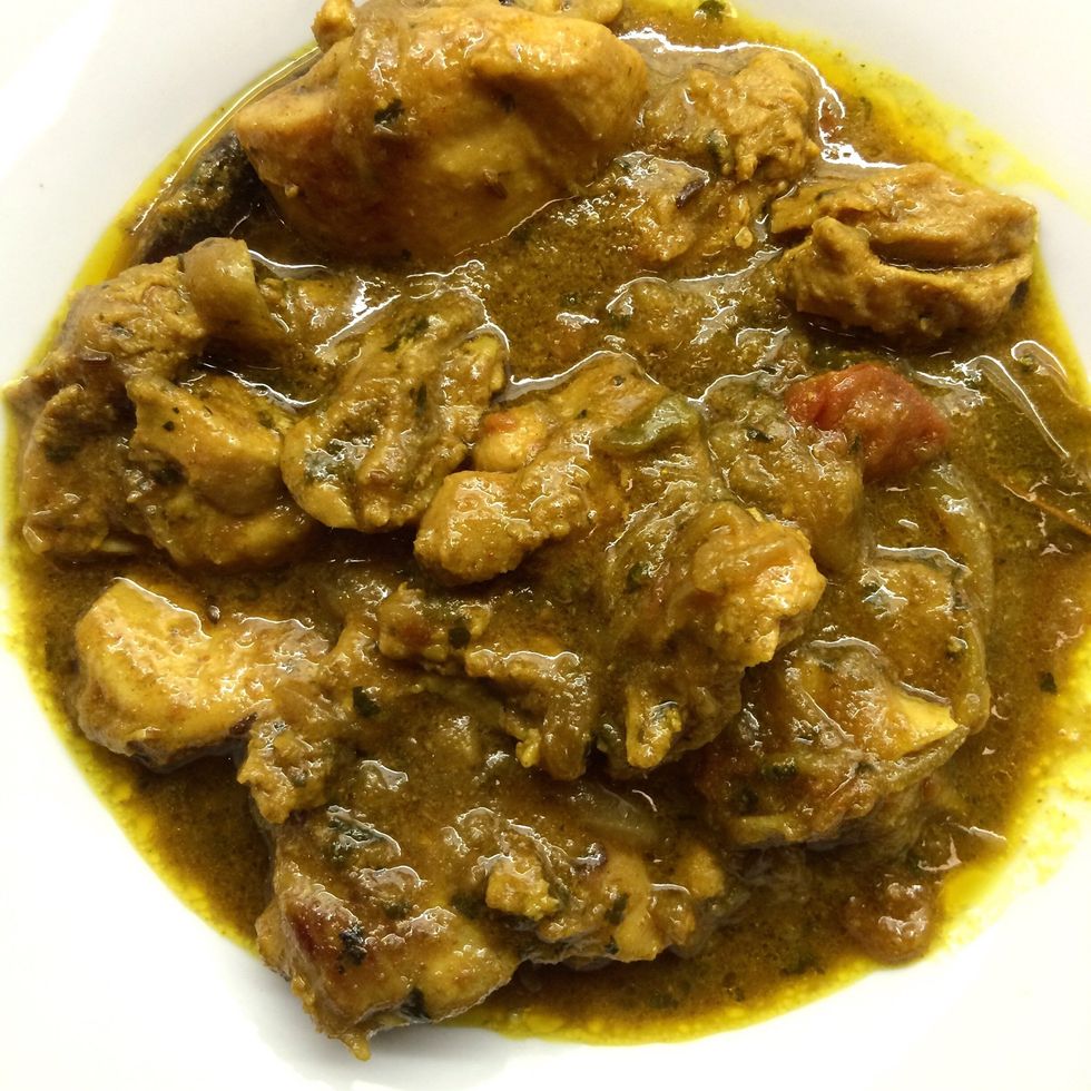 As the chicken starts to water, add a can of chicken broth. Cook over medium heat for 30 mins. until the mixture starts to thicken and the chicken is cooked well.