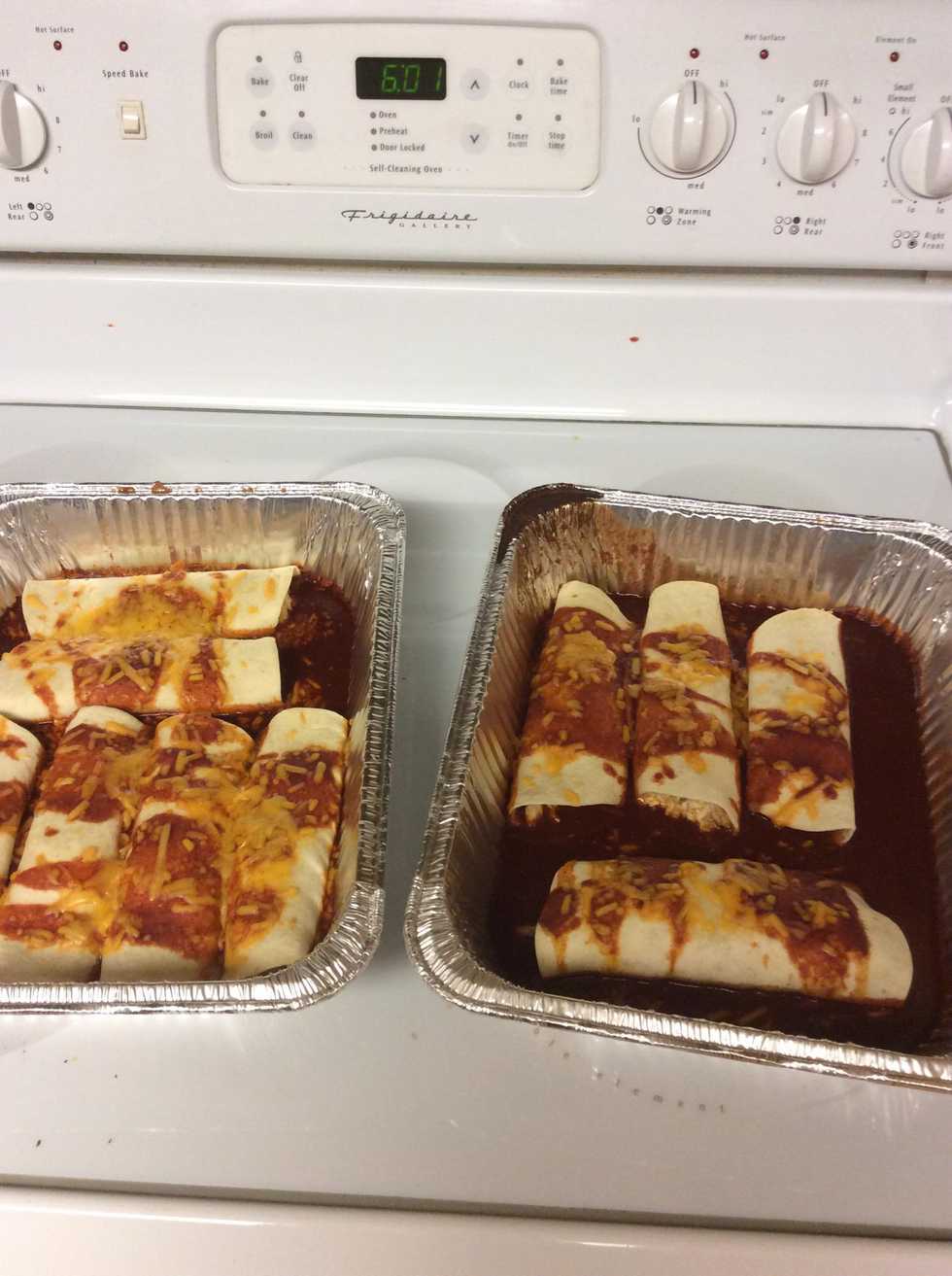 Spoon 2 spoonfuls into each tortilla and wrap them.