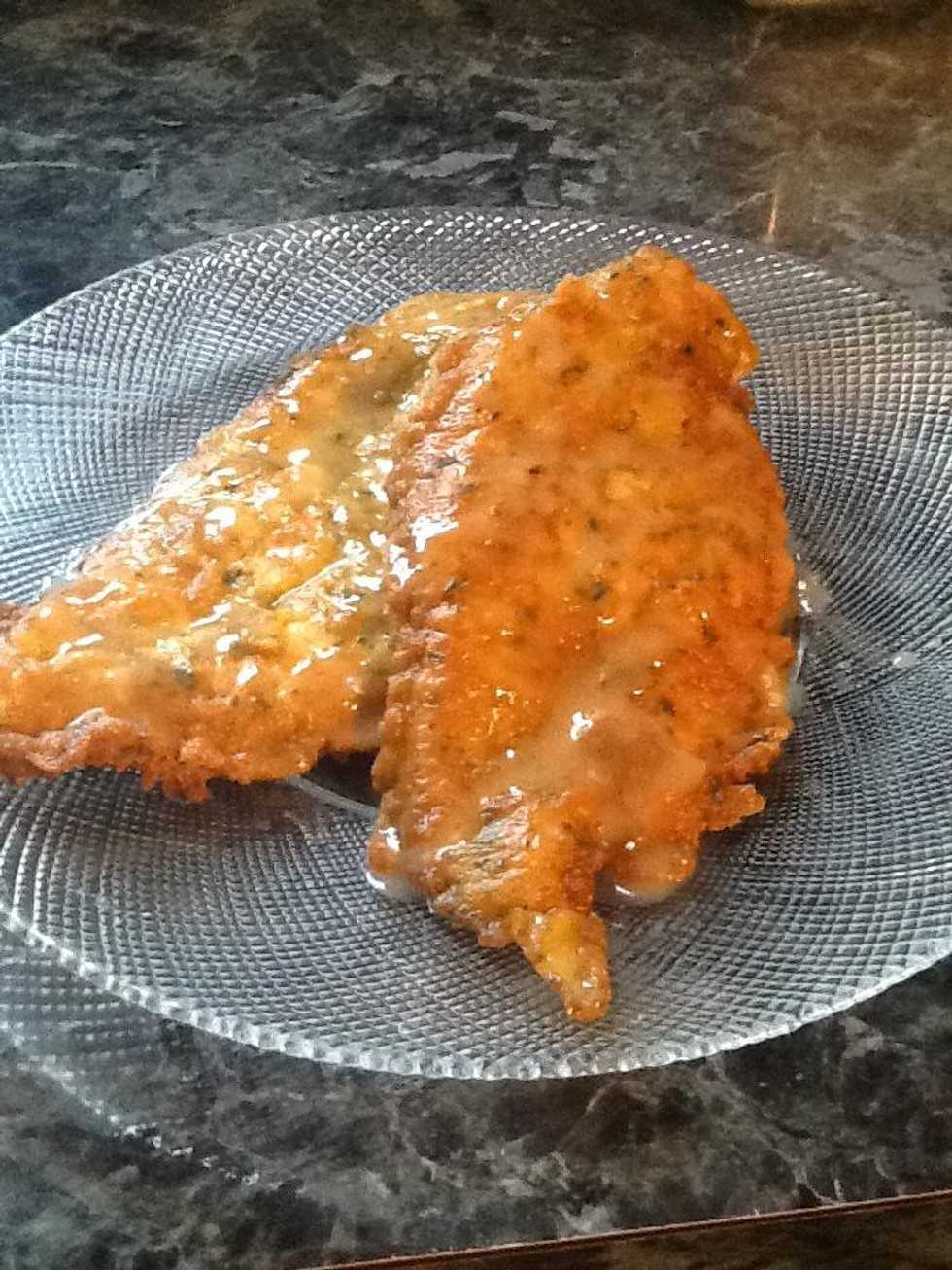 Ahh nice and browned, continue with the same steps for the rest of the cutlets. When your done don't forget to wash your hands, your messing with chicken and eggs they have loads of germs.