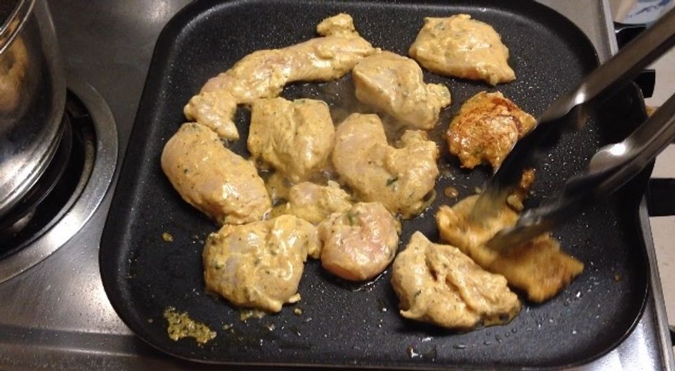 Here I have 2 lbs of boneless and skinless chicken breasts ( cut into bites)