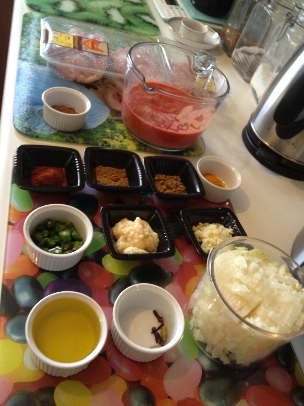Heat the oil in a large pan, once hot add the cloves and cardamom pods and sizzle.... Add the chopped onions and cook till onions are a dark brown