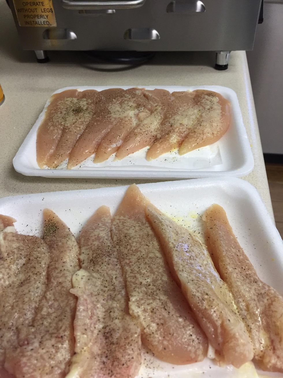 Season fresh chicken tenders.