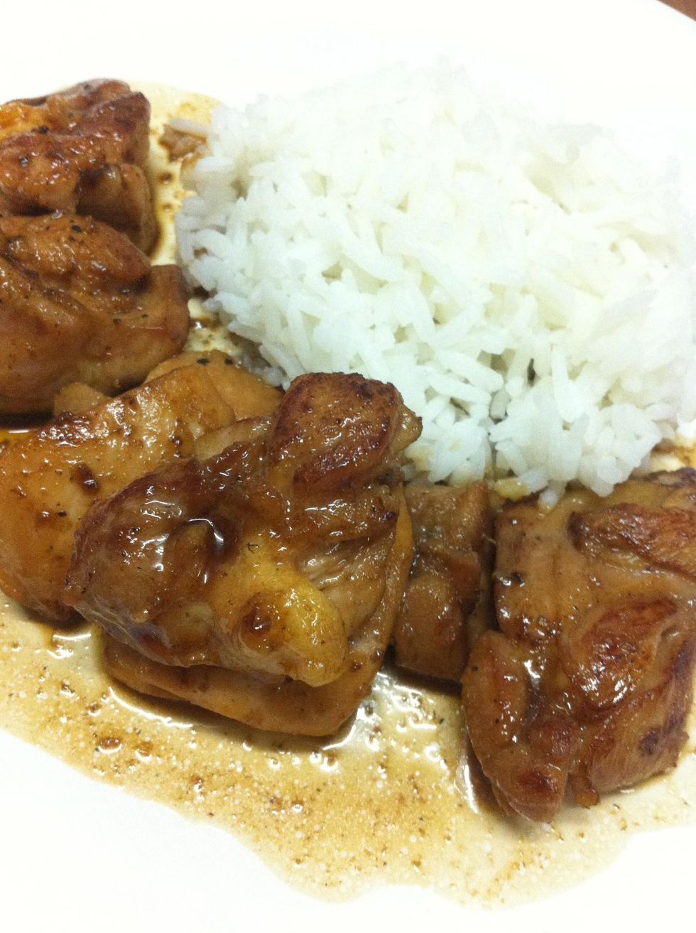 500g chicken thighs / 4 tablespoons of Teriyaki sauce / 2 tablespoons of sugar / 1 clove garlic, minced / 1 teaspoon of Salt and pepper /1 tablespoon of sesame oil