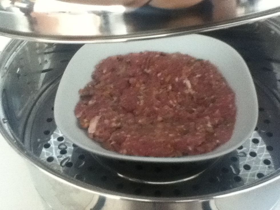 Add the bowl into the steamer after the water boils and let it cook for 20~25 mins