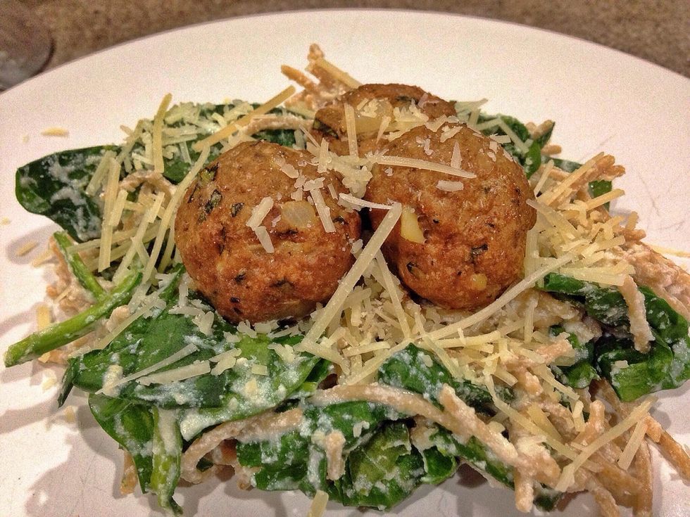 Serve meatballs over the spaghetti & spinach mixture. Parmesan cheese *can* be clean, provided it isn't processed and you can pronounce all the ingredients on the label. (Scientists, you don't count)