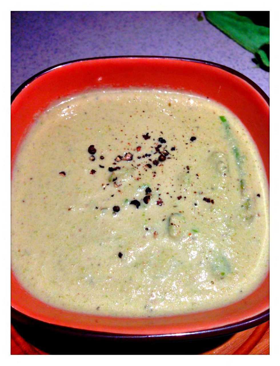 Place the 1st bunch of blanched asparagus into the pan & add milk. Bring to boil. Lower heat medium. Follow by adding 1/2 the cream.
