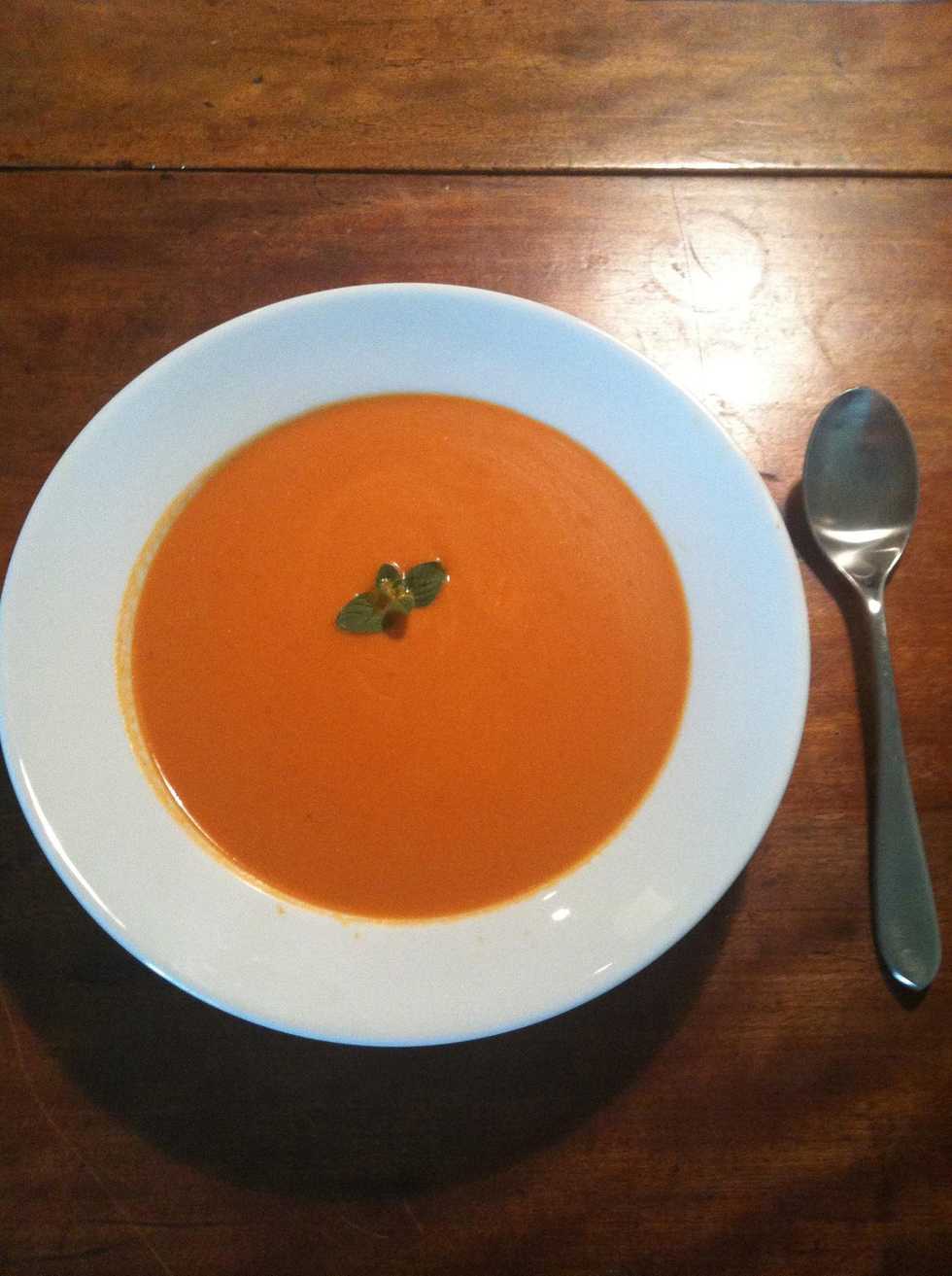 Once the tomatoes are soft (10-15 min) use a stick blender or stand blender to pure the soup. For a smoother consistency blend the soup while it is still hot, but be careful not to burn yourself.