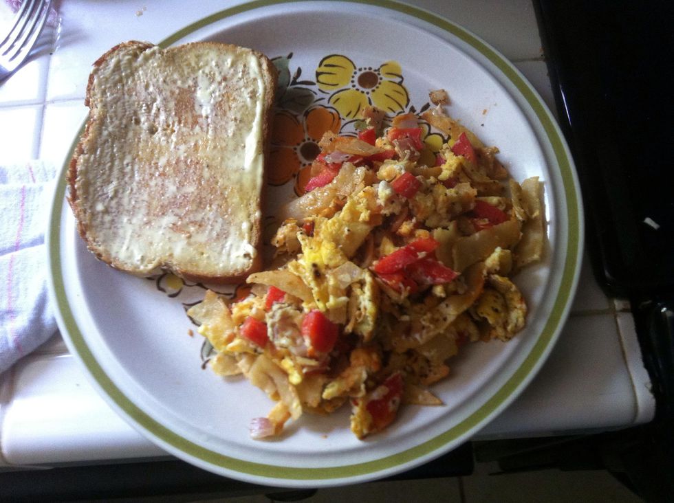 Assemble your ingredients. This is basically going to be a scrambled omelette.