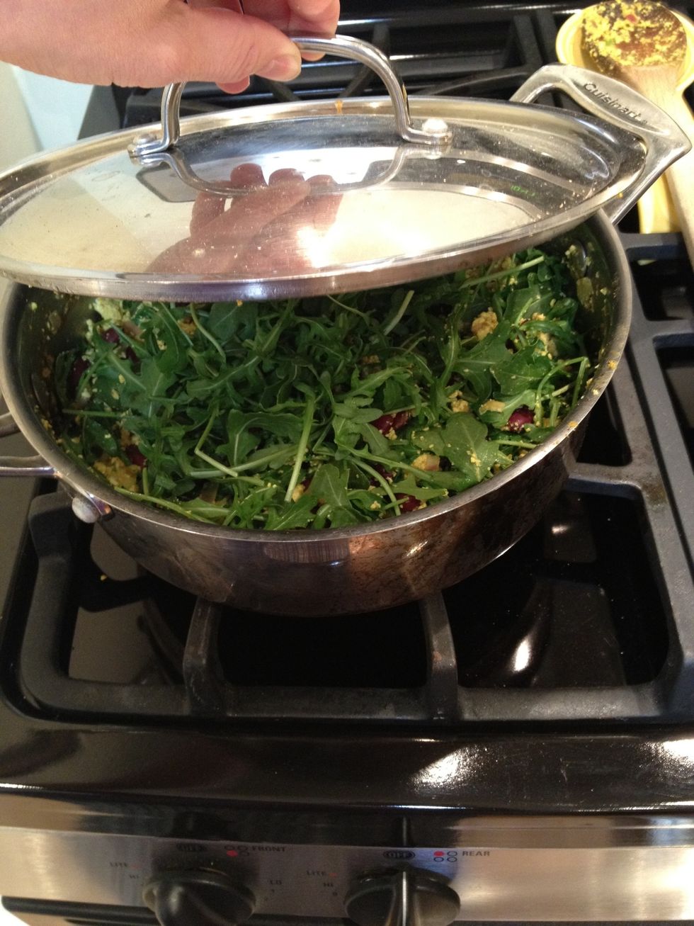 Add the arugula and stir it in, cover the pot for 3 minutes