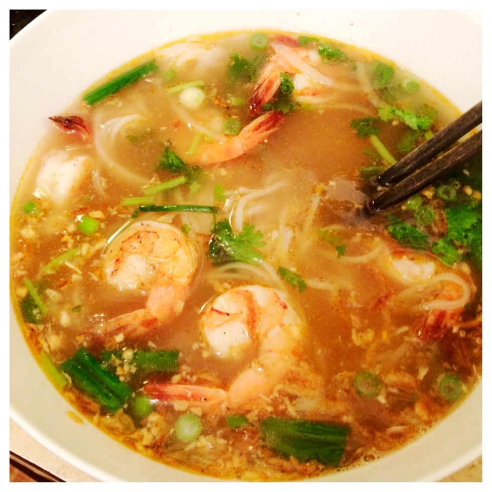 Meanwhile, this is optional, sauté some shrimp with light sprinkle of salt and pepper (1-2 min). My guy loves Seafood pho at the restaurant so that's why I add shrimp. Surprisingly it goes quite well!