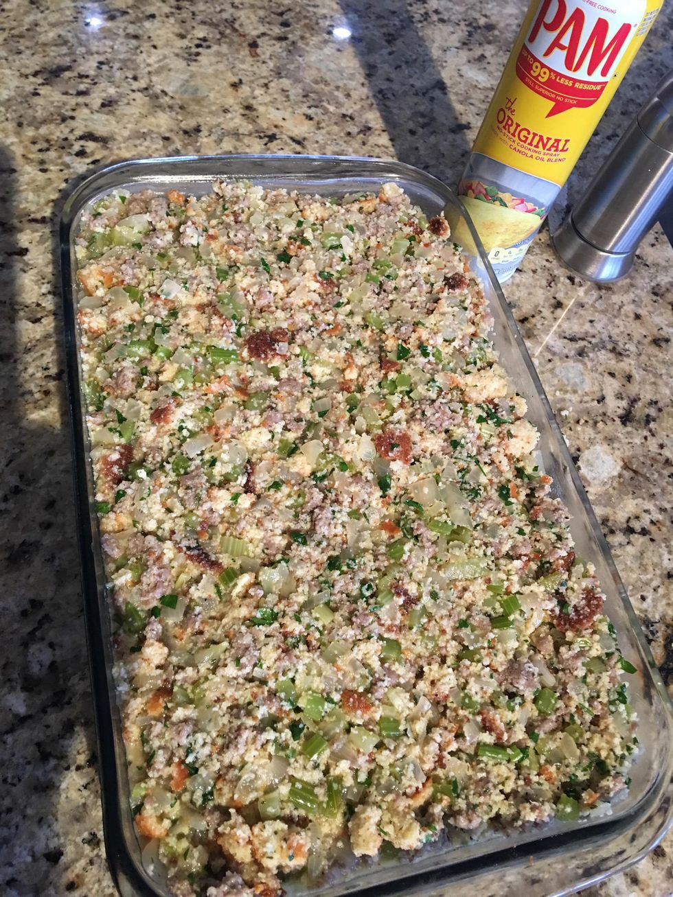 Stir well adding parsley broth and cornbread. It might be runny but that's ok.