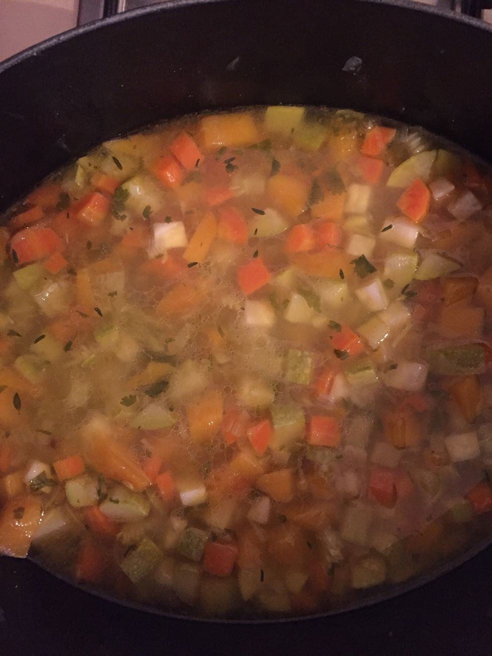 This is a real tasty and comforting vegetable soup. You can add in more vegetables if you'd like