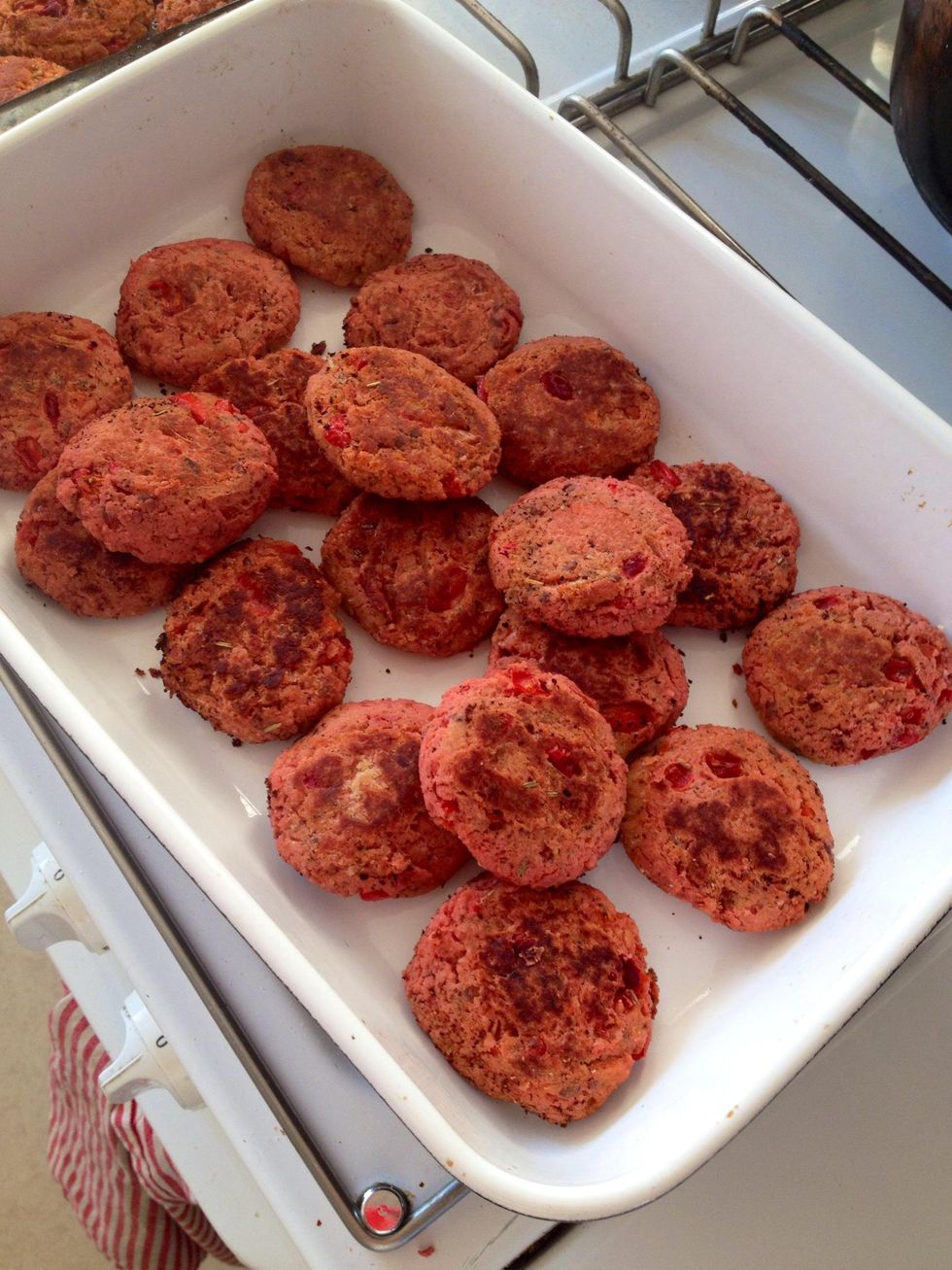 Roll and fry the paddies in a pan to get a good surface, then put them in the oven until the are done :) Should look like this when ready!