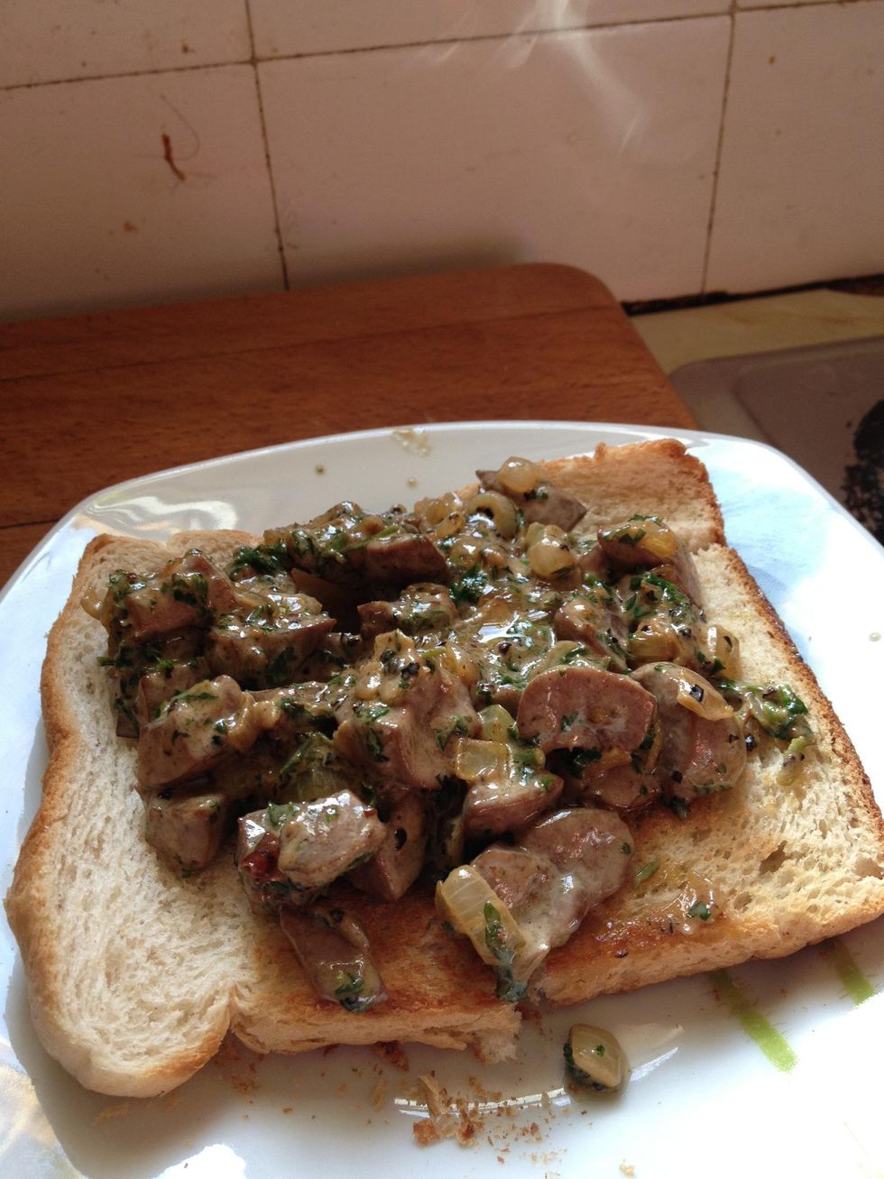 Traditionally served on fried bread done in fat but in these days of less fat, just toast , enough for 2.