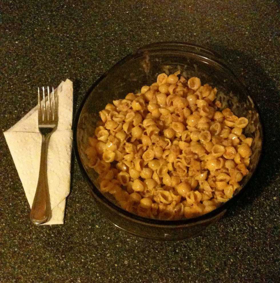 Once cook time is done drain pasta (and in this case chorizo) and set aside.