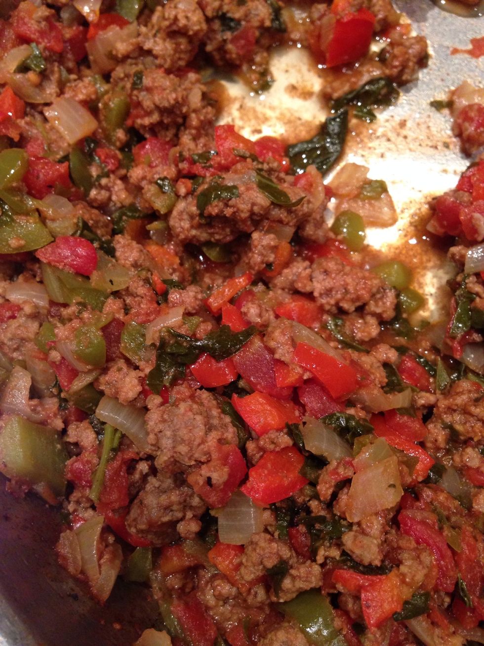 Mix in the meat: season with s&p, garlic powder etc (optional- not necessary!)