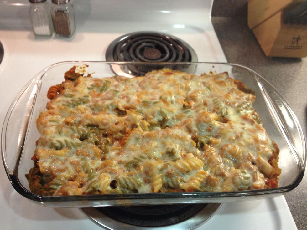 Pour in your pasta mixture and even it out.