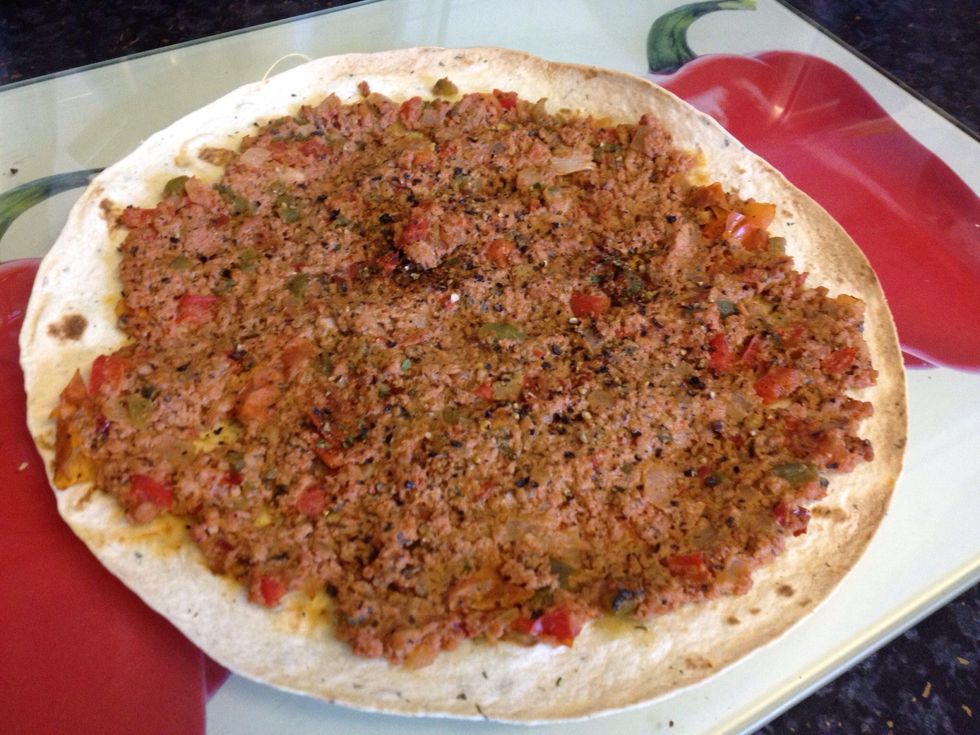 Spread the mixture in top of the tortilla With spoon