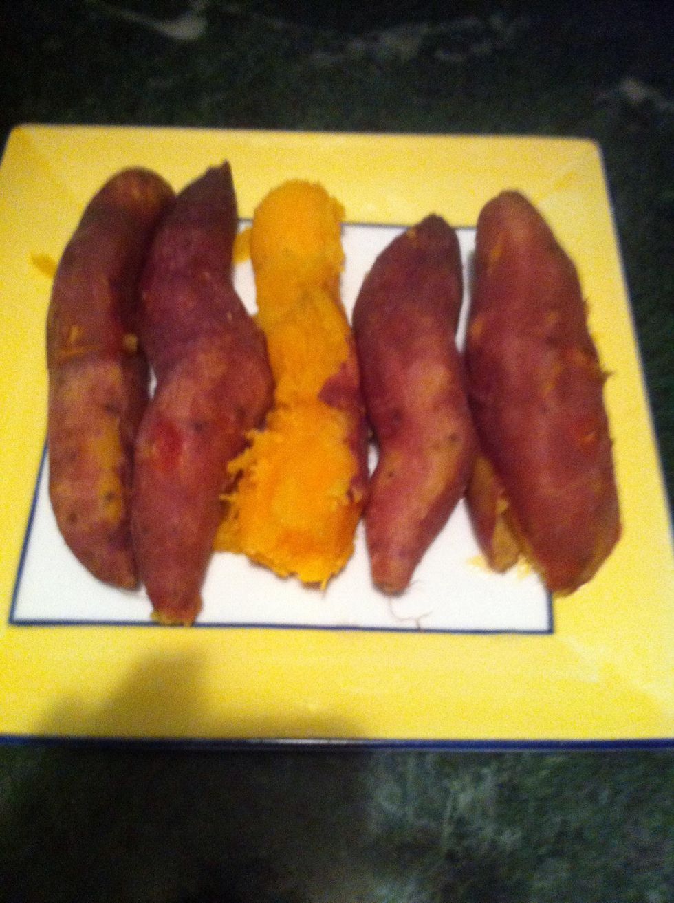 Gather supplies🍠Add waterLike thisNow at the potatoesLike thisCover the potNow change the water I changed itAt the sugarStir it with the wooden spoonCover itHigh the heatLeave it about 35 minsTa-daaaa enjoy it I opened one for you to see it