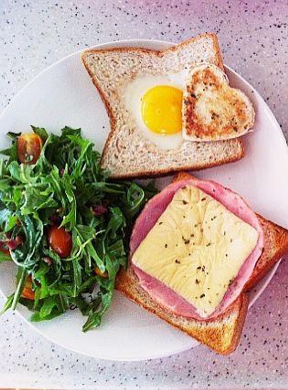 Slow heat till the bottom part of the egg is cooked. Lift up the toast to check, its ready when the bottom part of the egg doesn't stick onto the pan.