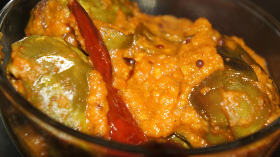 After cooking the paste for few mins the oil will come up, now that's the indication that the paste with ingredients is well cooked..now add the egg plants or brinjal to the mixture..