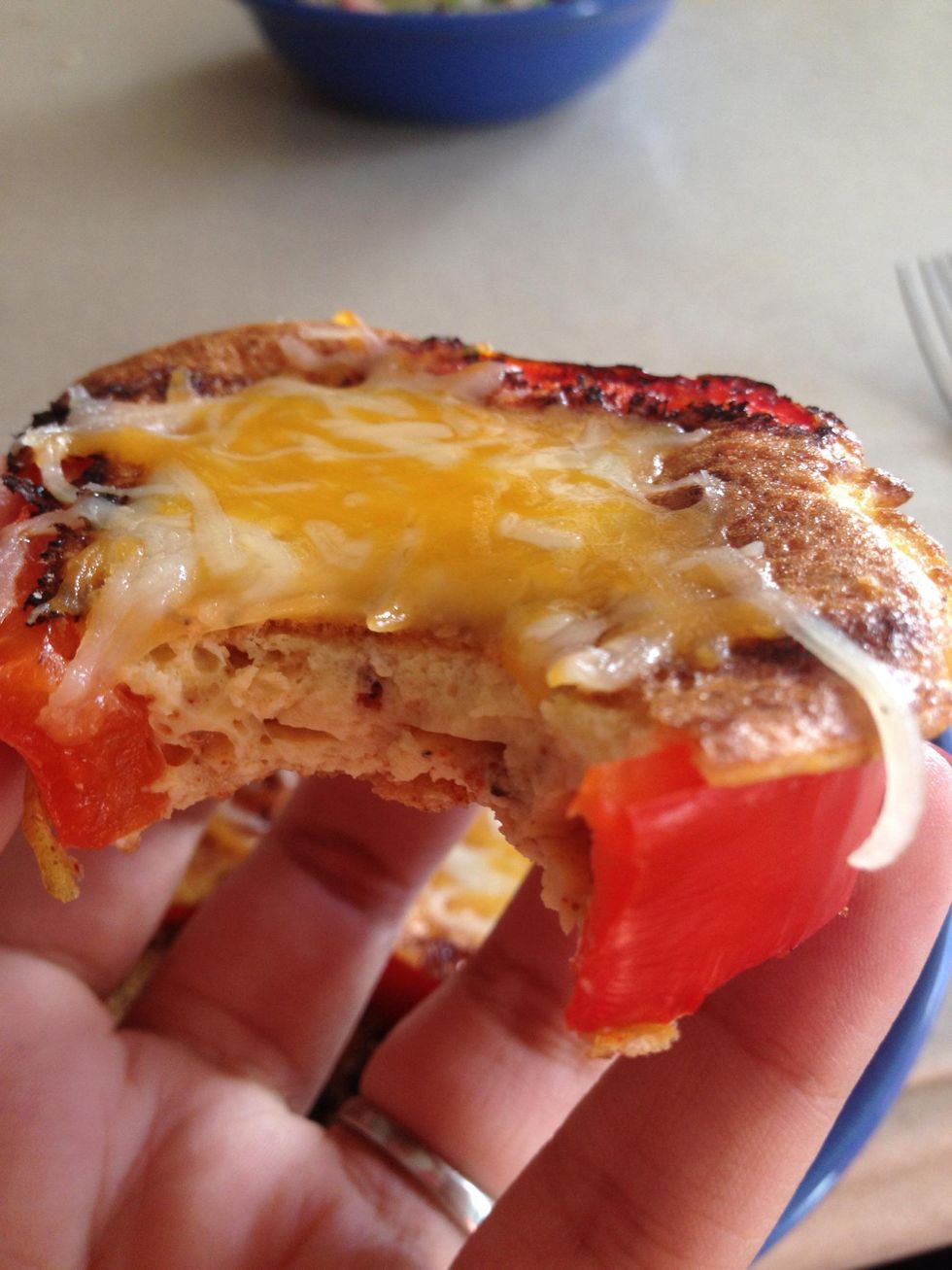 Put the heat in high. Spoon your egg mixture into each pepper. You may find it helpful to press onto the edges when first putting in egg to prevent it from leaking out early on.