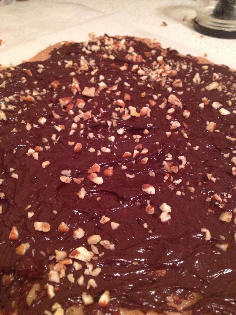 Lightly sprinkle pecans on top (optional) , crack into pieces.