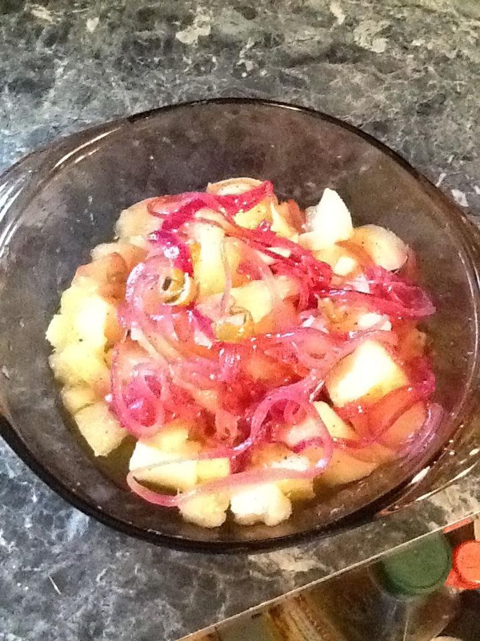 And salt as well. Let this marinate for several hours and serve at room temp.