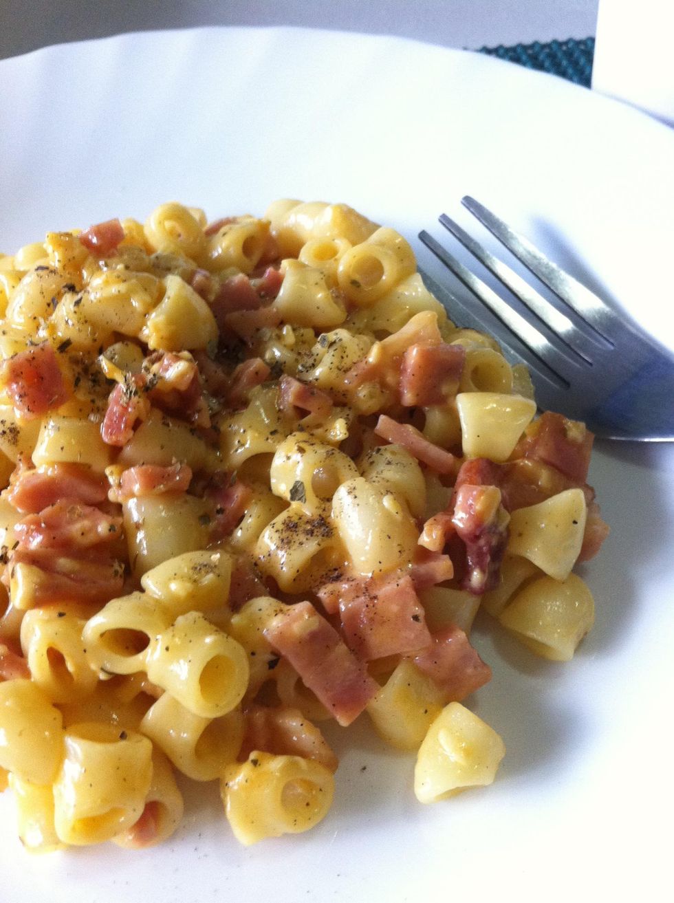 Do u have leftover macaroni noodles and ham well u just got the 2 main ingrd. 2 make an easy pizamac & cheese using ur microwave. :) Hope you'll like, share this guide and follow me "Spoon Kick" Enjoy