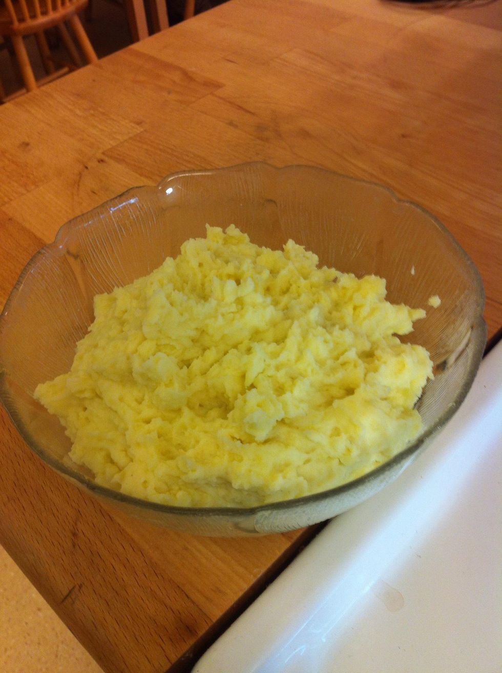Put in some butter, like 1-2 tablespoons or when you think it looks good. Then Pour In some milk (Didnt get a photo) untill it looks creamy