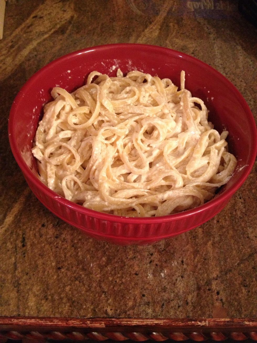 Add al dente prepared fettucini to alfredo sauce.