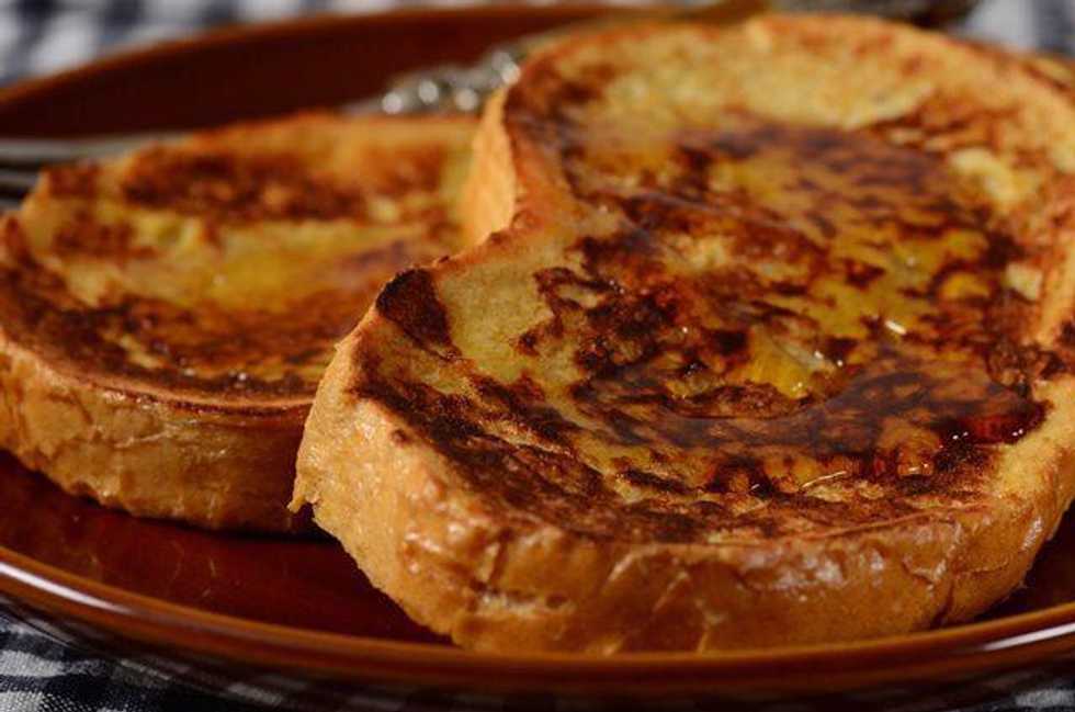 Get your two eggs and crack them in a bowl beat until they are yellow add salt and cinnamonHeat a lightly oiled griddle or skillet over medium or high heatcook on both sides until goldenAdd powdered sugar if you want