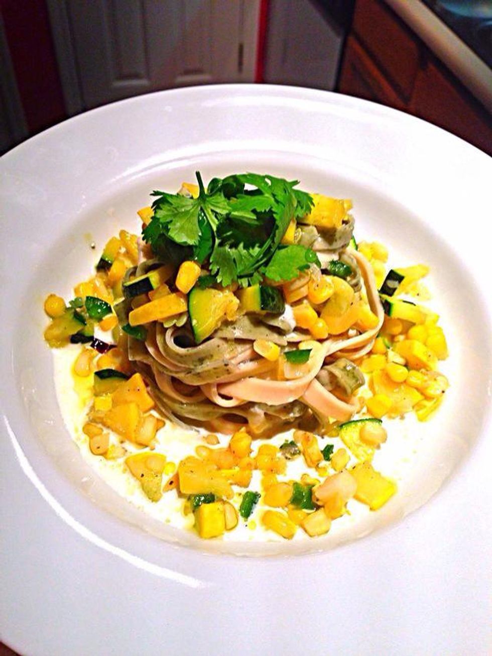Take your zucchini and yellow squash, cut off the ends, cut into 1/8ths, then dice.