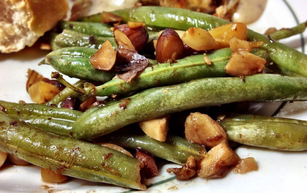 A delicious, and lower calorie, alternative to Thanksgiving green bean casserole. Fresh green beans are an entirely different animal than canned - so if you think you don't like them, try these!