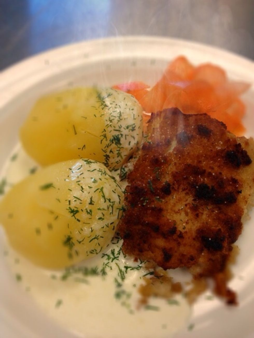 Take out the fish and let it cool just a few minutes. Serve with potatoes and fresh dill.
