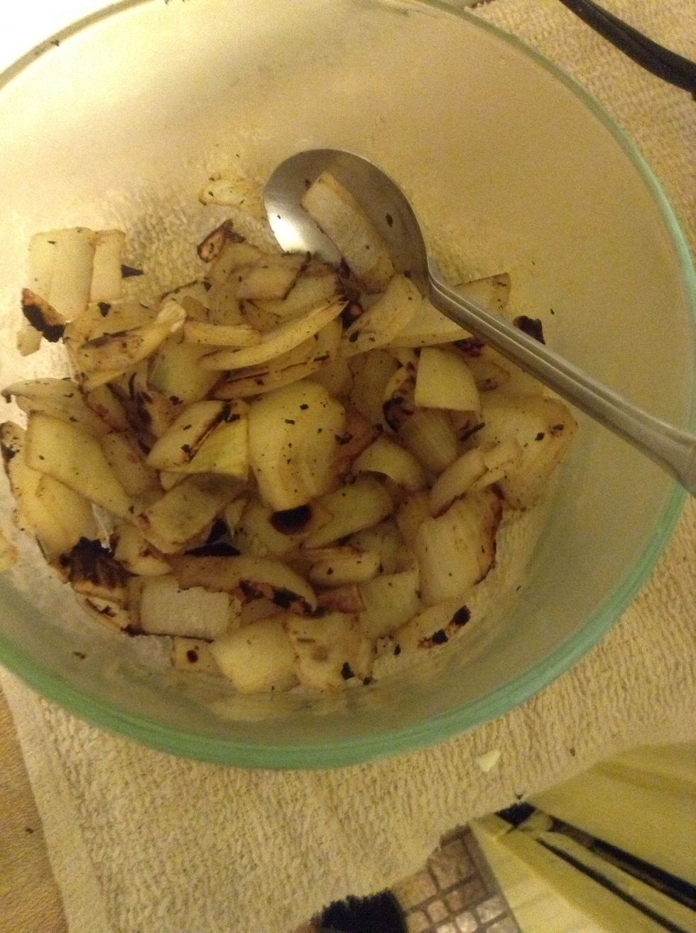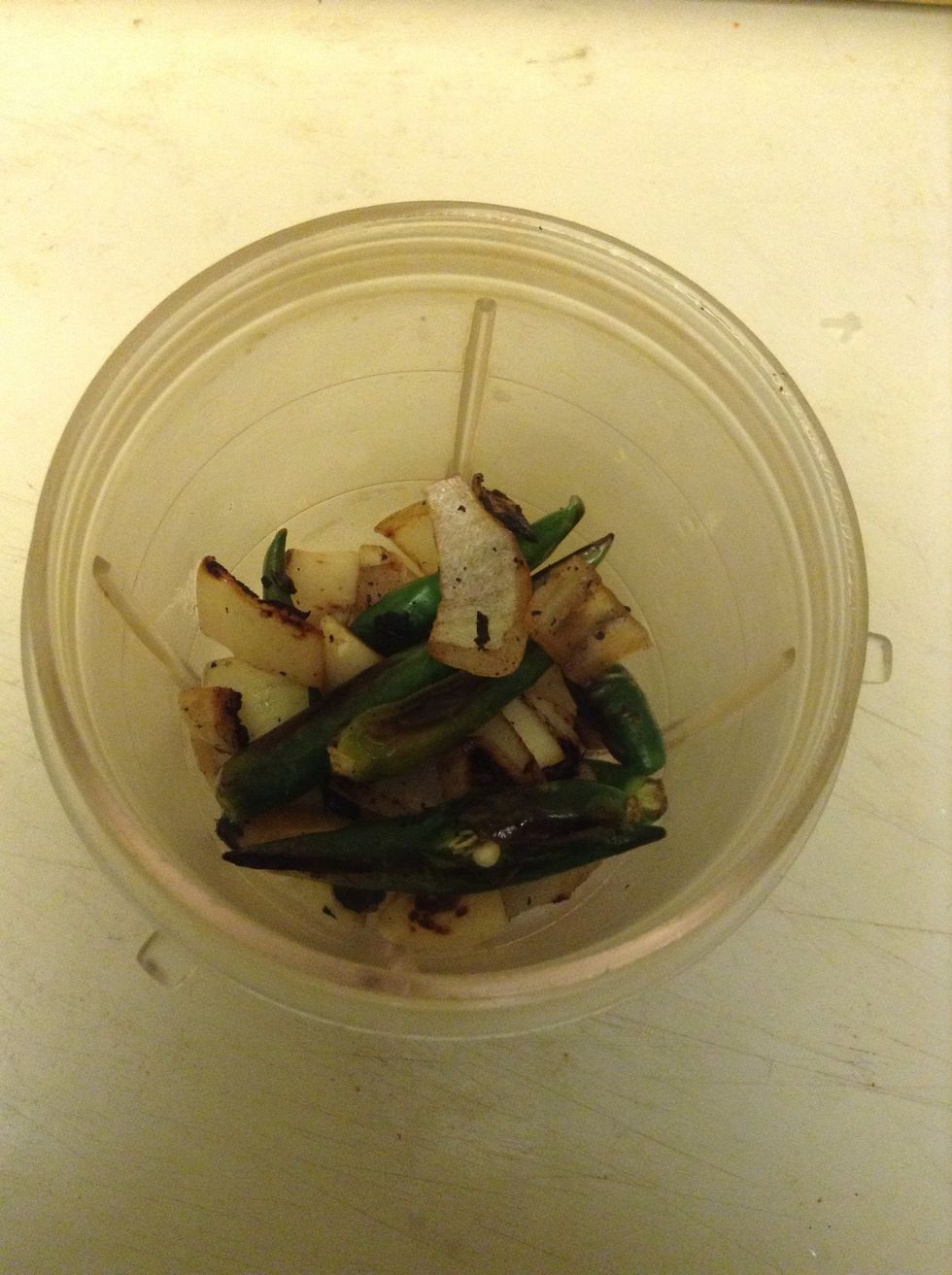 Prepare onion, garlic and chili in small pieces and grill with the pan.