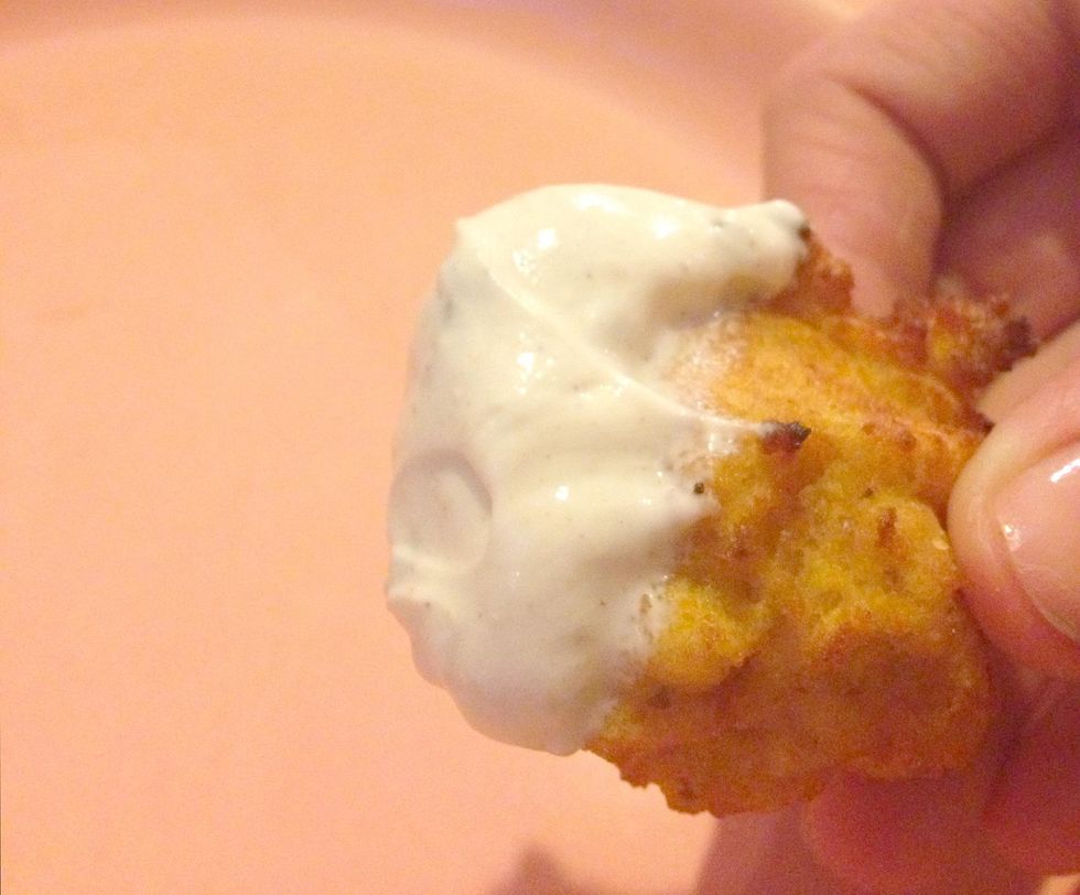 For the sauce, mash petit-suisse and add cumin seeds, sugar and garam masala. Mix with a fork until a smooth sauce