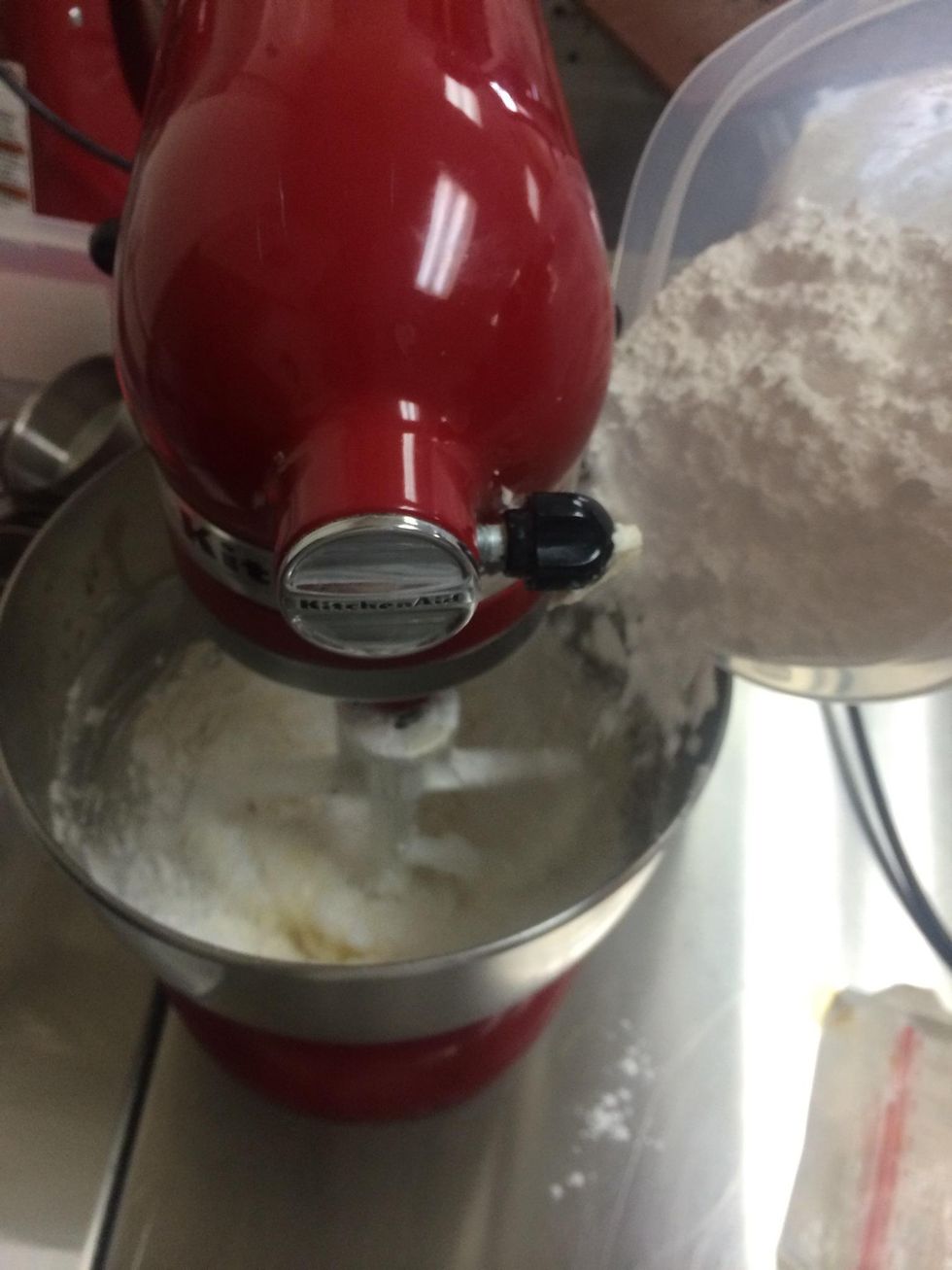 Slowly add the Powdered Sugar, one cup at a time. Incorporate fully between additions.