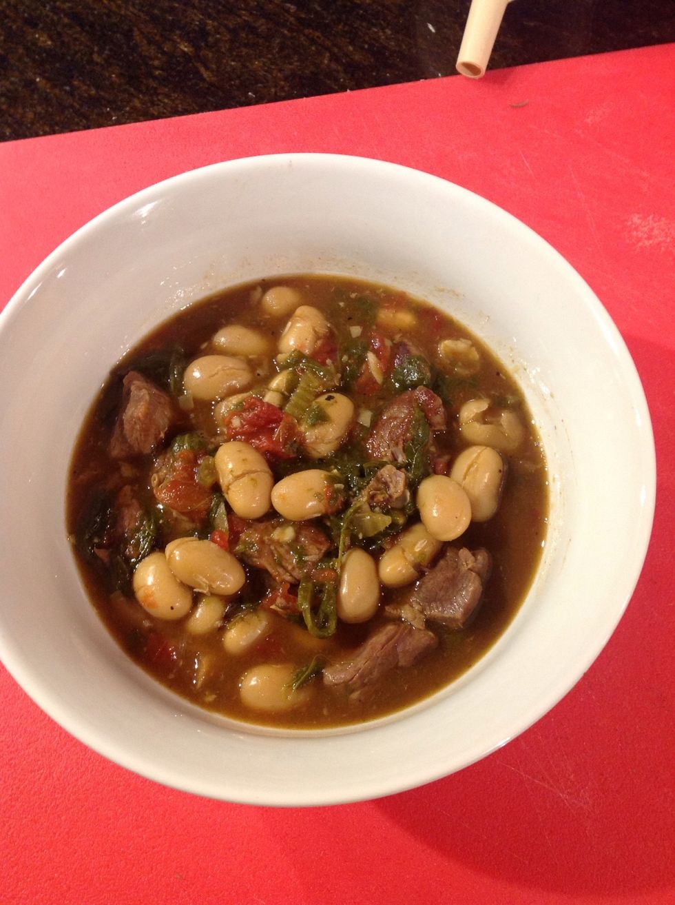 Cook Garlic Lamb With White Beans & Mustard Greens