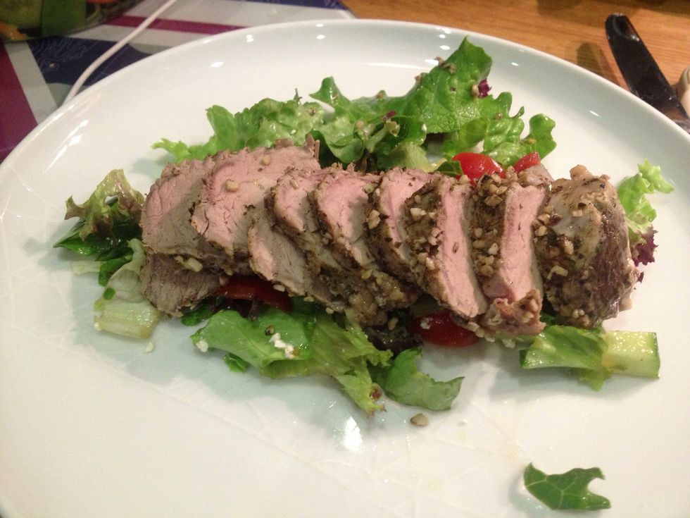 Place the medallions over a bed of spinach (or mixed salad).