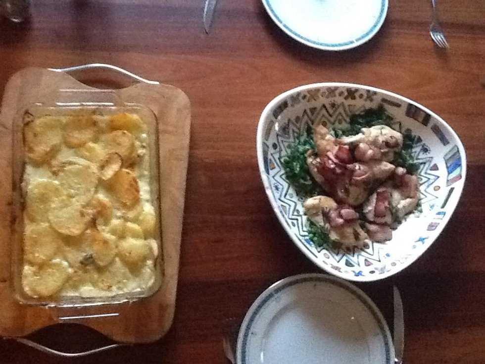 This is how your meal should look once you've gotten the potato bake out of the oven and put it all together. Yum!
