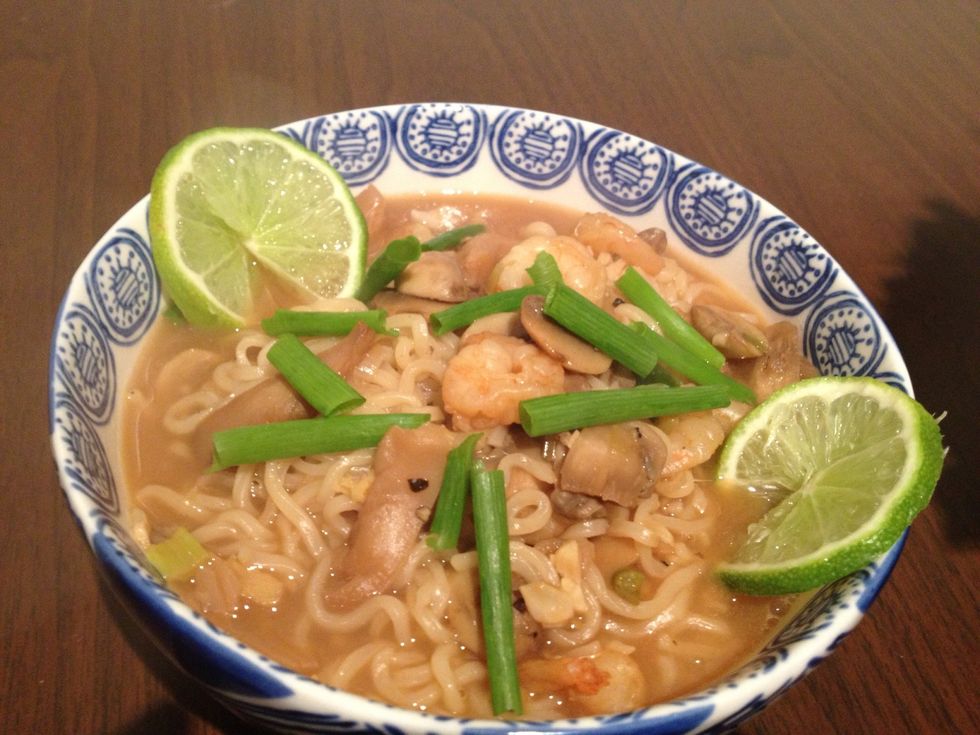 Plate with some fresh scallions and lime slivers, Enjoy!!