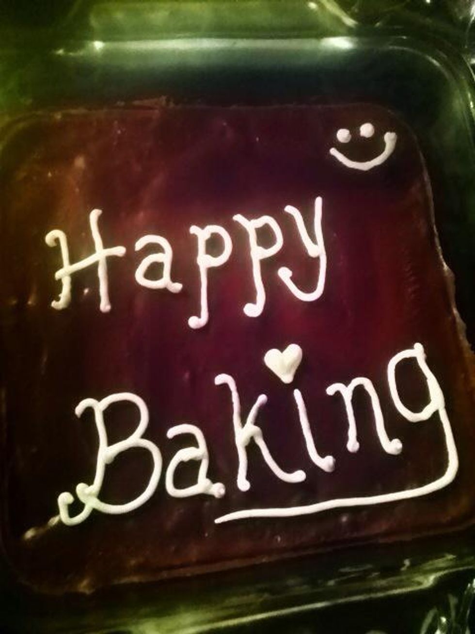 Spread it on while the 'cake' part is still very warm. Very important to do it when it's warm so it all melds together into rich mass!