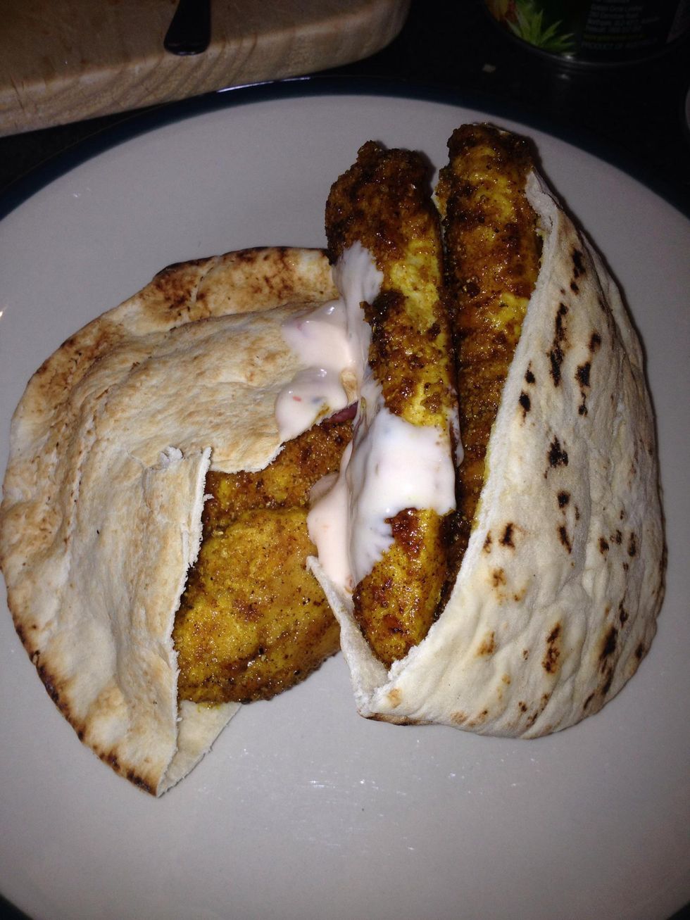 The turmeric will add a rich golden colour to the coating of the chicken.