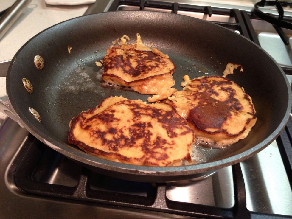 Add the egg and scramble and add about a tablespoon of the peanut butter of your choice